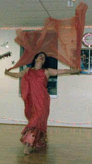 Alay’nya showing veil techniques that she learned from master dancer teacher Anahid Sofian